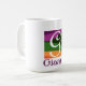 Modern Monogram Initial Letter green Coffee Mug. Letter G. Start your day with a personalized touch! This elegant coffee mug features an initial letter on a minimalist purple, green, and yellow geometric background. Perfect as a gift for friends or family, it combines style and functionality with a chic monogram design.