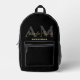 Personalized With Name Black Gold Modern Monogram Printed Backpack