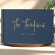 Designed in a classic navy blue and gold color scheme, our Elegant Calligraphy Script Guest Book adds an elegant touch to your wedding decor. It's not only a beautiful custom wedding guest book but also a thoughtful wedding anniversary gift for her, commemorating the enduring love shared on your special day.