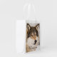 Personalized wolf face winter forest grocery bag