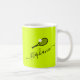 Elegant feminine tennis monogram on a personalized mug with an elegant script name on a bright yellow, green and black background that can be changed to any color, perfect for a women or girls tennis player, coach, instructor, or camp counselor or team mate.