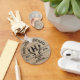 Celebrate the wedding day or anniversary of a special bride and groom with this customizable keepsake styled like a distillery logo stamped on the lid of an oak bourbon barrel! A monogram between deer antlers, couple's names and wedding year appear below arched text that reads “100% Love, Distilled,” on a background that looks like planks of wood. Makes a rustic looking, modern, personalized gift!