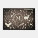 Woodland elements against barn wood backdrop with a wreath in the center for your personalization.