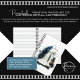 • Sleek, professional design featuring feathered fountain pen, ink bottles, and parchment paper