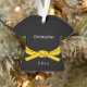 A yellow belt karate Christmas ornament, which can be personalized with his or her name on the front along with the year. A unique Christmas keepsake for kids.