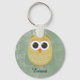Keychain with a cute yellow, green, and orange owl on a green grunge background. Text, font, font size and color are completely customizable, so make it your own.