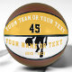 Personalized Yellow Black Player Silhouette Team Name Kids Basketball. Custom basketball ball with a black basketball player silhouette and custom text in yellow, black and white colors. Personalize the ball with a team name, player`s number, player`s name and year - change any text on the ball with yours if you want. A great keepsake to remember the favorite sports and a perfect gift for a basketball player, teammates, coach, your friends and family.