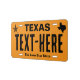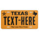 Stand out with style using this Personalized Custom yellow Texas License Plate. Featuring a sleek yellow background and classic Texas layout, this plate is fully customizable with your name, initials, slogan, or any text you like. Perfect for car lovers, Texans, or anyone looking to add a personal touch to their ride. Great as a gift or custom decor piece for your garage, office, or room.