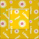 Bold daisy named repeat patterned fabric in bright yellow and white with hints of pink and lime green. Ideal for sewing projects for girls. Customize with your own choice of name currently reads Lillian. The background color can also be changed if required. Design is produced to tie in with other products from this range. Original art and design by Sarah Trett.