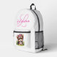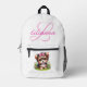 Lightweight and durable, our custom all-over-print Backpack is just what you need. The spacious interior is ideal for travel, school, gym, or any mobile storage need. Bring your stuff with you in style! Features Adjustable padded shoulder straps, two chambers on the inside for laptop storage, mesh side pockets and an identification label.