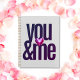 Celebrate your love and stay organized with this stunning "You & Me" glitter-themed planner. Perfect for planning your dream wedding, this customizable planner allows you to add your names on the back cover for a truly personal touch. Its sleek design, featuring bold text and a sparkling pink heart, makes it an ideal Valentine's Day gift for couples or a thoughtful present for newlyweds. Keep track of important dates, to-do lists, and plans in style. Whether it's for wedding prep or as a daily planner, this elegant design adds a touch of romance to your organization.