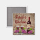 Wine and grapes vineyard rustic custom name personalized refrigerator magnet is perfect for that Tuscan style kitchen. It has a rustic brick and stone look background with images of grapes, wine glases, and a wine bottle. The name can be changed to the name you need. "Kitchen' can also be changed to suit your need, (ex. - cucina, bistro, galley, etc). The bottle can also be customized however you like, with the matching name as shown, or with something like, "Smith Vineyards", or "Your name Cabernet", etc...