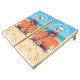 Natural Wood Cornhole Set, Royal Blue and Yellow bags