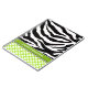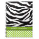 This personalized notebook can be personalized with your name or other text and features a fabulous, custom cover just for girls. This girly design has a sassy black and white zebra striped pattern on top, and a cute green and white polka dot pattern on bottom.