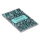 Personalize this notebook with your own text. This is a zebra print pattern in black and turquoise/teal.