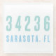 Upscale, simple and modern design Zip Code Glass Coaster personalized with your own Zip Code, City and State. In beautiful, coastal blue colors sure to match any Coastal Decor or Beach House Decor. Easily personalize this design with your own location.