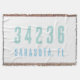 Upscale, simple and modern design Zip Code Throw Blanket personalized with your own Zip Code, City and State. In beautiful, coastal blue colors sure to match any Coastal Decor or Beach House Decor. Easily personalize this design with your own location.