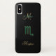 Personalized Zodiac Sign Scorpio on Black iPhone X Case. A metallic green and gold astrological symbol for Scorpio, in a classic style on black, with Capricorn in gold metallic script. If your favorite Scorpio is getting a new phone, this protective case is an ideal gift. Fill in your name and initial at the prompt to personalize and customize anyway you like.