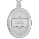 Personalized necklace, with an elegant silver damask design. Enter your name or monogram in the space provided. Click "customize" to change font type or size.