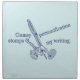 A funny illustration of a pen with anthropomorphic properties. This pen has human legs and is walking through the middle of a sentence. The text reads clumsy personification stomps through my writing. A great design for an English teacher with a student, an author or a creative writer.