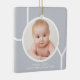 This stylish Baby's First Christmas Photo Ornament is decorated with the word JOY in white on a gray background.