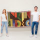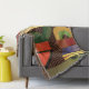 Perspective cotton throw blanket. Perspective is an abstract design created by Anna M. Asbury and consists of multi-colored shapes on a brown background.