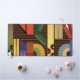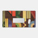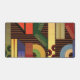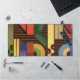 Perspective desk mat. Perspective is an abstract design created by Anna M. Asbury and consists of multi-colored shapes on a brown background.