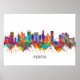 Elegant Watercolor Skyline of Perth, capital of Western Australia, sits where the Swan River meets the southwest coast