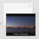 Postcard featuring a photo of the Perth city skyline at night, over the Swan River, Western Australia.