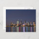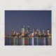 Postcard featuring a photo of the Perth city skyline at night, with colourful reflections in the Swan River, Western Australia.