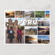 Souvenir photo collage postcard of Peru with beautiful landscapes of Machu Picchu, Uros islands and the Amazon rainforest with the text 'Peru' in white.