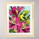 Fun bright artwork that really captures the mood I’m going for! Pop art with cyberpunk energy. A little sweet but also spicy. This art is the perfect size and vibe for our art gallery wall. The printing looks great, high quality with vibrant colors! I went with the semi-gloss finish, which adds a little extra shine and thickness to the print making it excellent for high-traffic areas like the staircase wall.