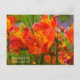 Beautiful orange Peruvian lilies (Alstroemeria) - annotated postcard
