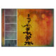 A Pervoskia (Russian Sage)flower against a flaming hot yellow and orange background with Collage photos in Aqua and rose pink with a paint on metal textured look.