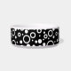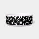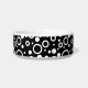 Pet bowl shown in white with a accent print in a black and white circles design.