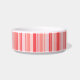 Pet bowl shown in white with a accent print in a coral stripes design.
