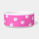 This pet bowl is shown in a cute dog paws print.