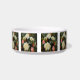 This is a heavy, durable bowl decorated with Tibbies of many colors, the perfect size for hungry/thirsty Tibs. The design is interesting and printing clear.