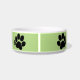 Paw prints (left and right polydactyl prints with 7 toes each) on each side of text "Polydactyl Love" Background of medium green may be changed..