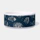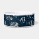Pet Bowl with Cute Fish Sketch on Dark Blue .