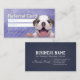 Pet Bathing and Grooming / Pet Care / Pet Sitting / Pet Grooming / Pet Food Shop / Pet Beauty Salon / Animal Hospital / Animal Clinic Referral Card / Loyalty Card / Punch Card Business card Template - Adorable Cute Cartoon Low Poly Dog on Purple Color Background.