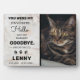 Remember your beloved cat who will always be in your heart with this beautiful marble cat quote pet photo memorial plaque. This elegant design features a light gray marble color as the background with a quote that says "You Were My Favorite Hello and My Hardest Goodbye." Personalize this cat memorial plaque with your cherished kitty's name and the dates of remembrance.