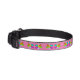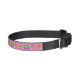 Good quality and fit is perfect for our Treeing Walker Coonhound/Beagle mix - about 45lbs and 15” neck. I wish it was pink all around (why I took off 1 star) but goid quality, printing! See above description - I added the flower to her collar in the photos