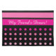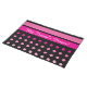 Place under your pets bowls to keep their eating area tidy. Personalize for your dog. Pink polka dots and stripes with black.