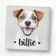 Photo fridge magnet featuring your custom pet photo with with the pet's name as a black (or custom color) text overlay flanked by two hearts.