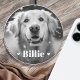 Photo wireless charger featuring your custom pet photo with with the pet's name as a white text overlay flanked by two hearts.