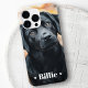 Phone case featuring your custom pet photo with with the pet's name as a white text overlay flanked by two hearts.