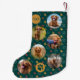 Decorate your home and spoil your favorite pet with this super cute custom pet photo collage and monogram christmas stocking in a green snowflake background..
