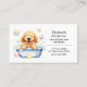 Cute dog groomer watercolor illustration of a happy fluffy curly brown golden doodle dog in a bathtub. Great for pet groomer who specializes in dog bathing and grooming. Ready to be personalized with your custom information. Business name, title, address, phone number, and the back your email and facebook and instagram info. There's space enough to add the appointment on the back of the card.