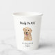 These dog wedding paper cups are the a great way to include your pet in your wedding. This design is complete with the saying "Drinks On Me!", the dog's name. the bride and groom names, the date, and an adorable Golden Retriever graphic. I have many other dog breeds available in my store. If you look at my "dog wedding napkins" in my store, you will see a selection of different breeds. If you find a breed there that matches your dog, please feel free to message me on Zazzle *before you order* and I can get that breed on paper cups for you.